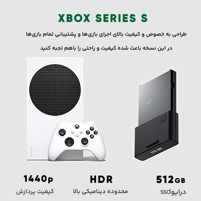 کنسول بازی مایکروسافت مدل XBOX SERIES S ظرفیت 512 گیگابایت به همراه کارت طلایی نصب بازی