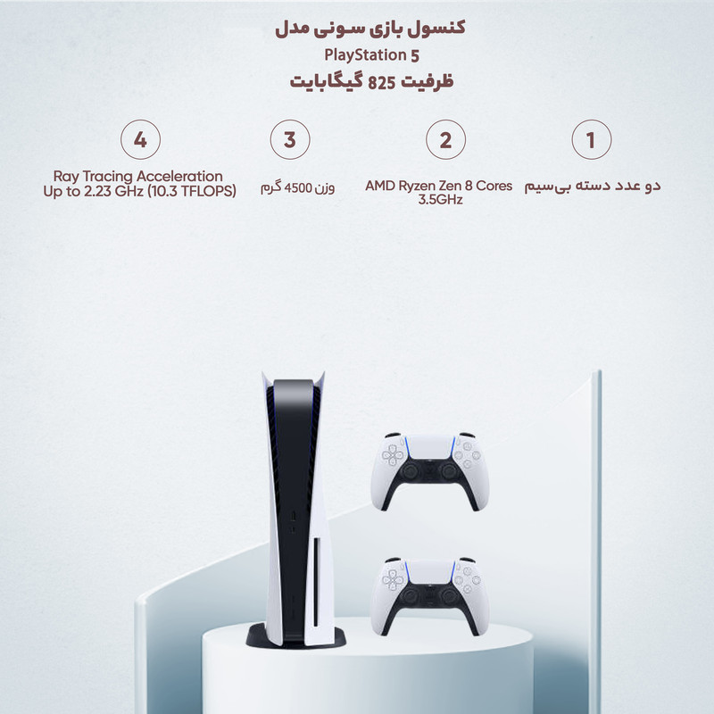 مجموعه کنسولهای بازی PlayStation حدود سه دهه است که توسط شرکت سونی تولید شده و روانهی بازار میشوند. کنسول بازی PlayStation 5 به عنوان نسل جدید این کنسولها با مشخصات فنی چشمگیر روانهی بازار شده و به سرعت به یکی از پرطرفدارترین کنسولهای بازی در سراسر دنیا تبدیل شده است. این کنسول با حافظهی داخلی پرسرعت 825 گیگابایتی خود اجازه داده است تا توسعهدهندگان بازیهای ویدیویی بتوانند محتوای بسیار با کیفیتتر و با ویژگیهای جدیدتری را در دسترس دارندگان این کنسول قرار دهند. همچنین، قدرت بالای پردازندهی مرکزی و گرافیکی این کنسول شرایط را برای اجرای بازیهای ویدیویی با وضوح تصویر حداکثری 8K، نرخ تازهسازی تصویر 120 هرتز و با تنظیمات گرافیکی بسیار بالا مهیا کرده است. این کنسول PlayStation 5 با بهرهمندی از درایو Ultra HD Blu-ray میتواند از بازیهای ویدیویی فیزیکی هم پشتیبانی کند. همچنین، در این کنسول یک اسلات خالی حافظهی پر سرعت تعبیه شده تا در صورت نیاز بتوان میزان حافظهی داخلی آن را افزایش داد. لازم به ذکر است که این کنسول به همراه یک دسته اضافی و کارت طلایی اشتراک نصب بازی در اختیار خریداران قرار خواهد گرفت.