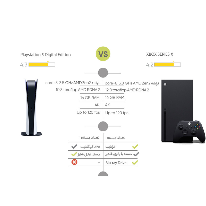 کنسول بازی سونی مدل Playstation 5 Digital Edition ظرفیت 825 گیگابایت یکی از محصولات بسیار حرفهای بوده که میتوانید در بازیهای کامپیوتری آن را تجربه کنید. این دستگاه یکی از بهترین و پرطرفدارترین کنسولها بازی در دنیا است که توسط کمپانی سونی ارائه شده است. این کنسول با اعمال تغییراتی ظاهری و سختافزاری طراحی شده است. درایوی در این مدل وجود ندارد و شما باید بهصورت دیجیتال بازیها را در آن داشته باشید. خروجی تصویر آن، از فرمت 4K پشتیبانی میکند. پردازشگر اصلی و گرافیکی این مدل تغییر اساسی کرده و از سری 4 قدرت بالاتری دارد. همچنین Playstation 5 Digital Edition بهواسطه پورت LAN یا اتصال بیسیم Wi-Fi به اینترنت متصل میشود و امکانات متعددی را برای کاربران فراهم میکند که بتوانند با عضویت در شبکهی PSN و پرداخت هزینه، بازیهای مورد نظر خود را خریداری و دانلود کنند یا اینکه به صورت آنلاین با دوستان خود بازی کنند. پورت USB از نوع Type-C به آن اضافه شده است. دستهها از طریق بلوتوث به کنسول متصل میشوند و برد مورد نیاز را پشتیبانی میکند. خروجی تصویر، پورت HDMI است و کیفیت 4K را پشتیبانی میکند. این مدل از حافظهی داخلی 825GB بهرهمند است.